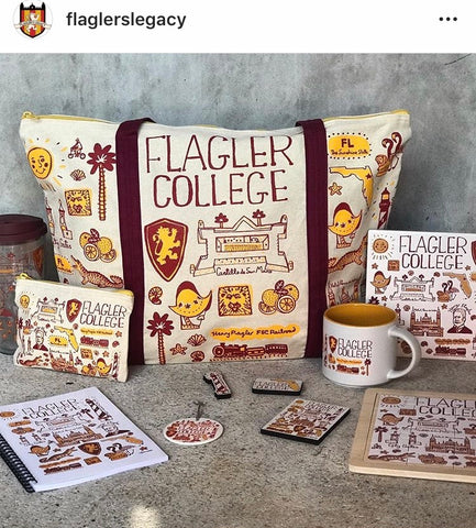 Over the last year I have collaborated with over 80 colleges and universities in America to create artworks that celebrate each of their cultural heritage and campus architecture. I have teamed up with a specialist manufacturer: Neil Enterprises based in Chicago, who turn my artwork into beautiful product such as natural, canvas tote bags, ceramic and tin mugs, water bottles, homewares and stationery.