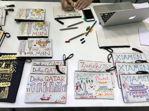 My collaboration with Cindy Lam, the Founder and Director of Clip began last year when she asked me to create a series of destination-based designs for airline amenity pouches. Having the opportunity to create them for specific airlines who were visiting the Clip booth was a great way to discover the world as well as where each airline hailed from.